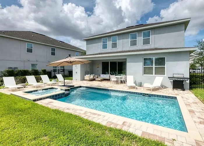 Gorgeous 5Br Petfriendly At Encore Resort Next To Disney - 7693 villa biedt een complete keuken met alle benodigde apparatuur, zoals koffie- en theefaciliteiten, een koelkast, een oven. Deze villa ligt 2 km verwijderd van Traditions at Reunion Resort, waar Amerikaanse gerechten worden geserveerd. De dichtstbijzijnde luchthaven is Orlando Internationaal, op 45 km van de woning.